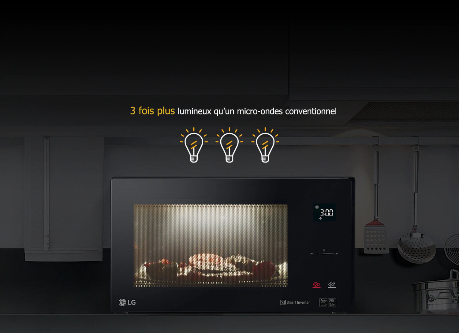 • Four à micro-ondes de 25 litres, Noir, technologie Smart Inverter avec 10 ans de garantie, gril, cuisson automatique intelligente, écran tactile en verre, Dual Control, éclairage LED