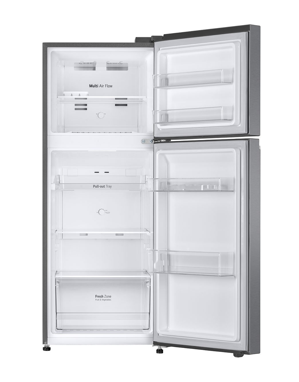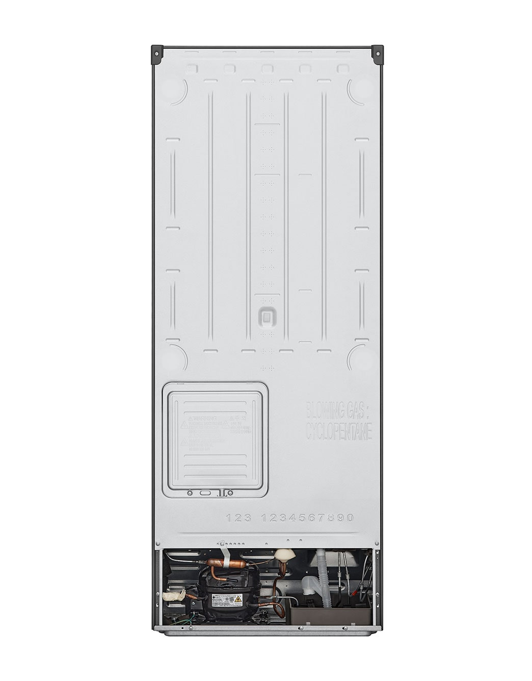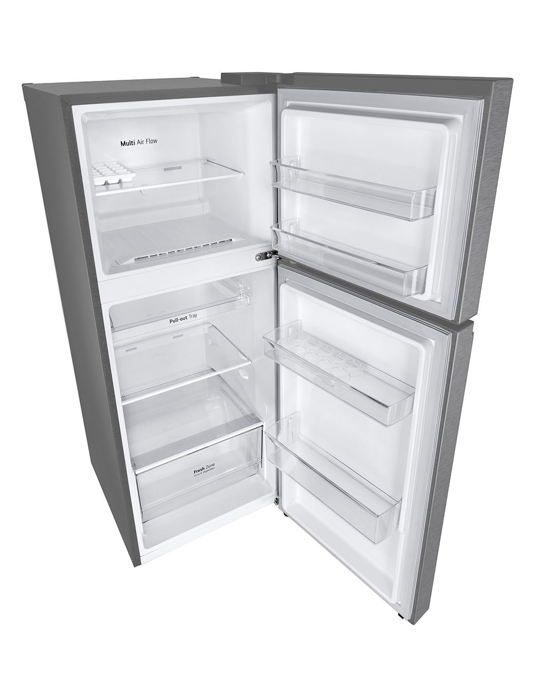 Le design du réfrigérateur à compartiment congélateur supérieur LG a été repensé avec le Packake Exterior Styling, qui comprend des portes profilées, des charnières cachées et un fini « Easy Steel » en option.
