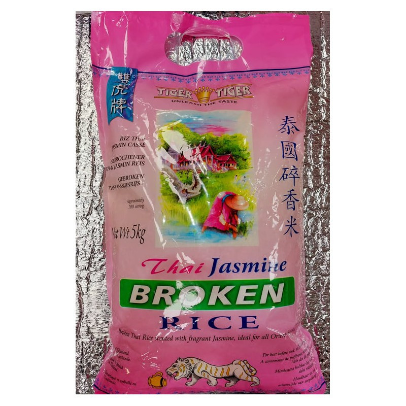 Riz jasmin cassé, apprécié pour son goût légèrement sucré et sa texture tendre, en sac de 5kg.