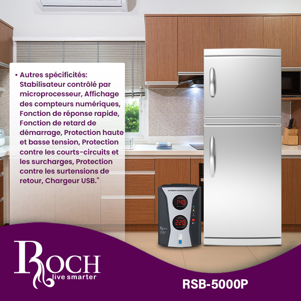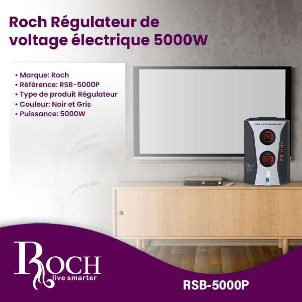 Dans un monde où les fluctuations de courant sont fréquentes, le Régulateur de Tension Électrique Roch 5000W est un gardien fiable pour vos appareils à haute puissance. Investissez dans ce régulateur dès aujourd’hui et profitez de la tranquillité d’esprit en sachant que vos appareils électroniques sont toujours protégés.