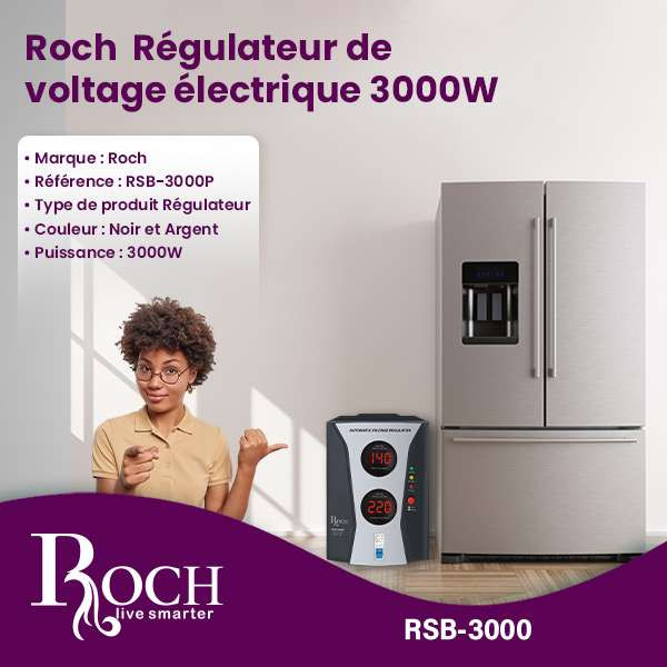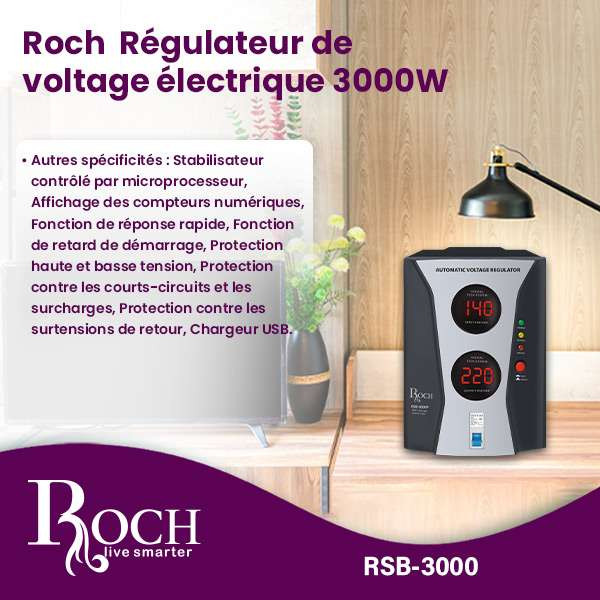 Découvrez le Régulateur de Tension Électrique Roch 3000W – votre solution ultime pour assurer une alimentation électrique stable et sécurisée pour tous vos appareils électroniques! Conçu par Roch, une marque de confiance dans l’électronique domestique, ce régulateur de tension avancé est méticuleusement conçu pour fournir des performances et une protection maximales pour vos appareils, en en faisant un ajout essentiel à tout foyer moderne ou bureau.